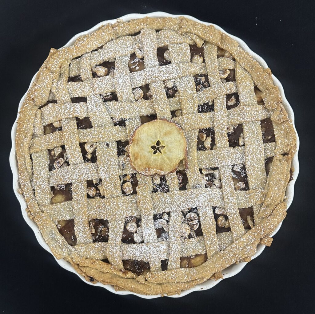 W październiku robiliśmy pieczone jabłka z orzechowym nadzieniem, a dziś czas na coś równie aromatycznego – szarlotkę na mące żytniej.