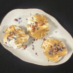 1. Na kruchy spód nakładamy ostudzony krem cytrynowy. Następnie mase na bezy przekładamy do rękawa cukierniczego i formujemy na górze małe beziki.